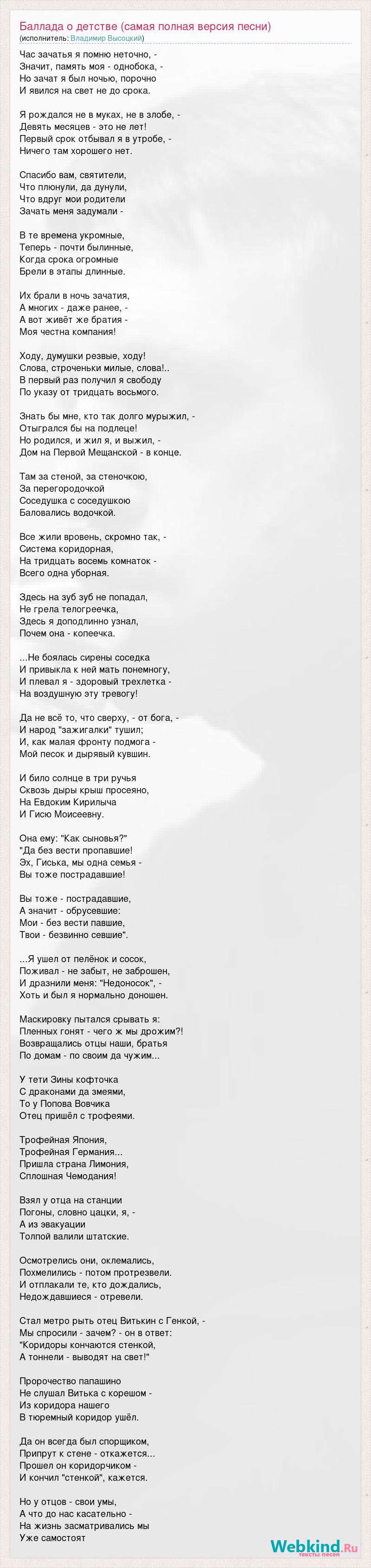 А как ты думаешь, о чем песня "Баллада о детстве (самая полная версия песни)" ?