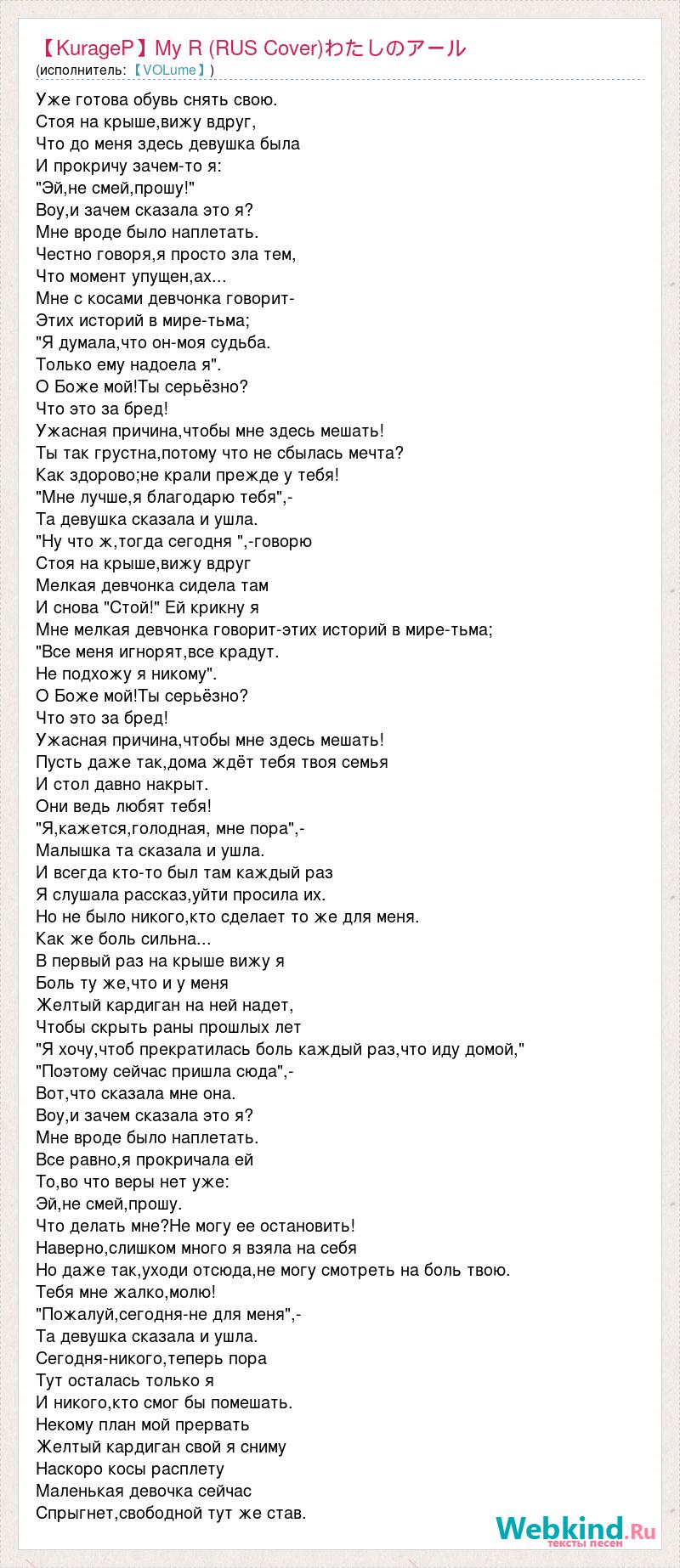 А как ты думаешь, о чем песня "【KurageP】My R (RUS Cover)わたしのアール" ?