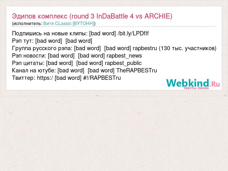 А как ты думаешь, о чем песня "Эдипов комплекс (round 3 InDaBattle 4 vs ARCHIE)" ?