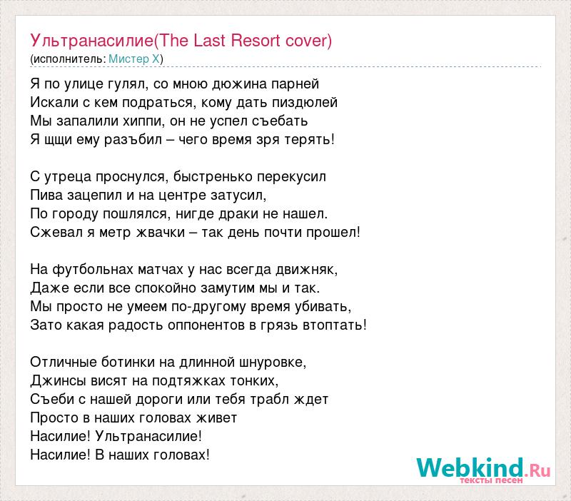 А как ты думаешь, о чем песня "Ультранасилие(The Last Resort cover)" ?