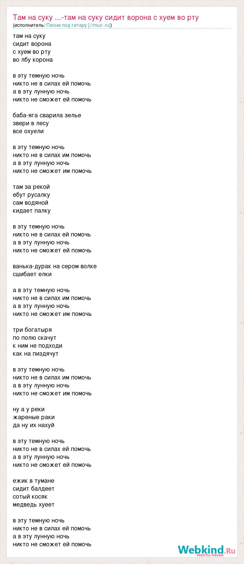 Главная→Исполнители→Песни под гитару [://muz-.ru]→Там на суку ...-там на суку сидит ворона с хуем во рту