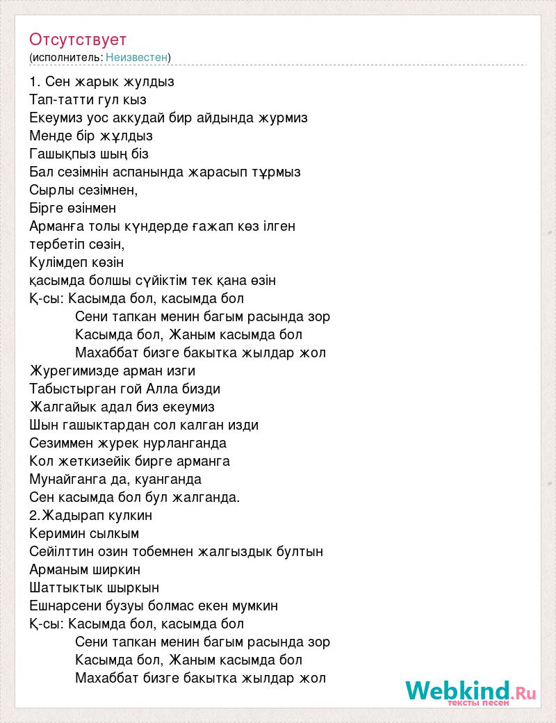 А как ты думаешь, о чем песня "1. Сен жарык жулдыз" ?