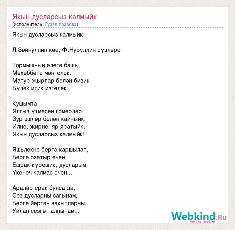 А как ты думаешь, о чем песня "Якын дусларсыз калмыйк" ?