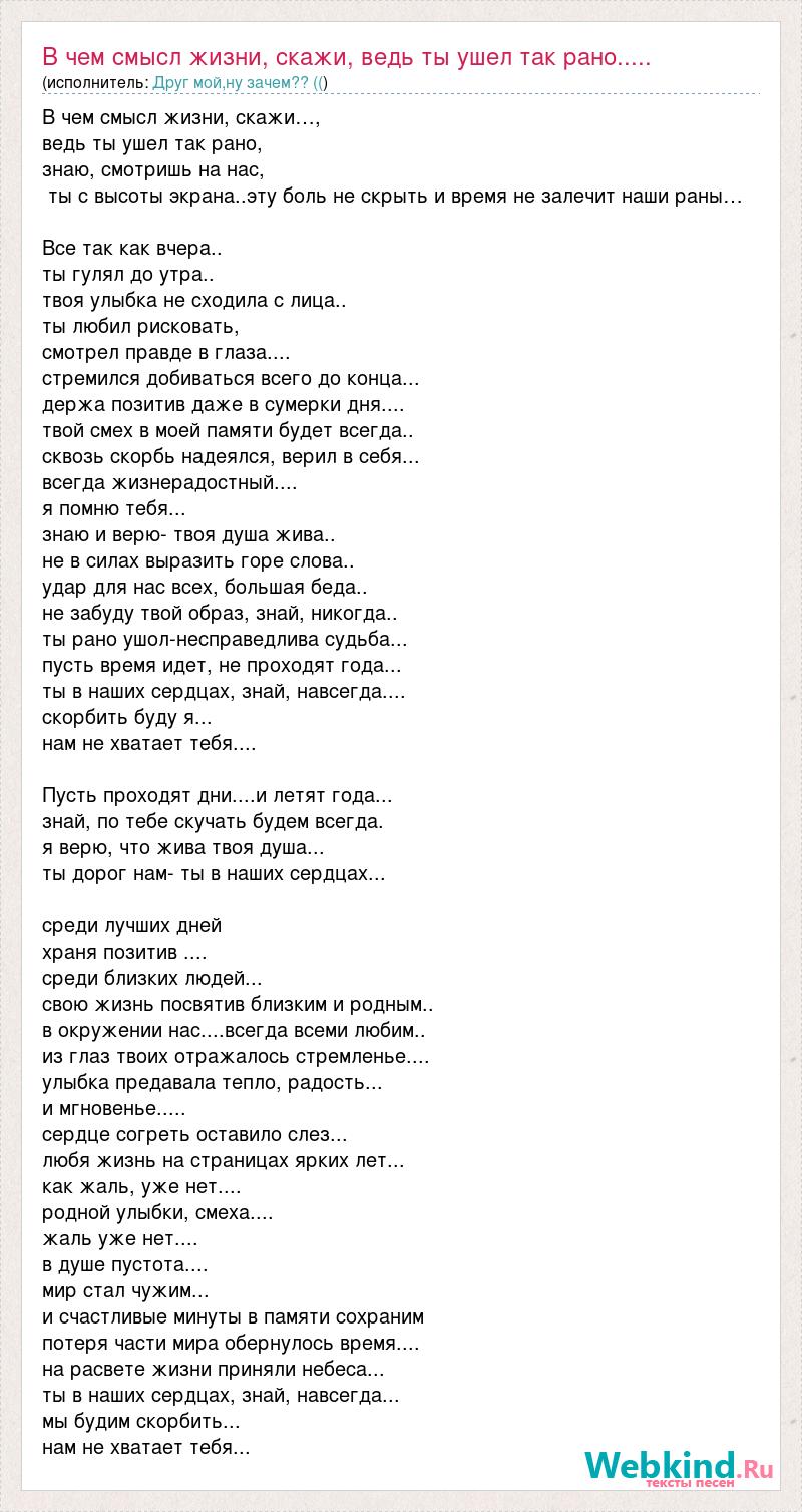 В чем смысл жизни, скажи, ведь ты ушел так рано.....