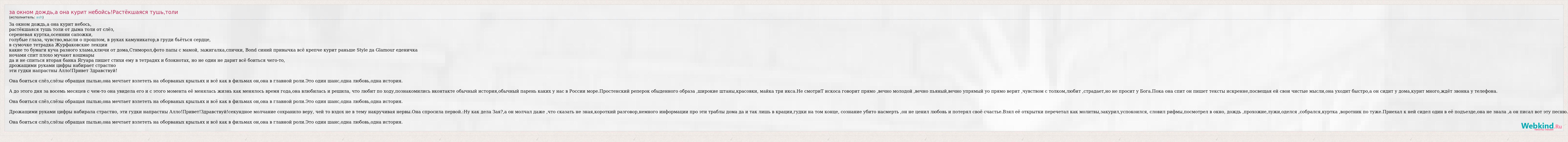 А как ты думаешь, о чем песня "За окном дождь,а она курит небойсь!Растёкшаяся тушь,толи" ?