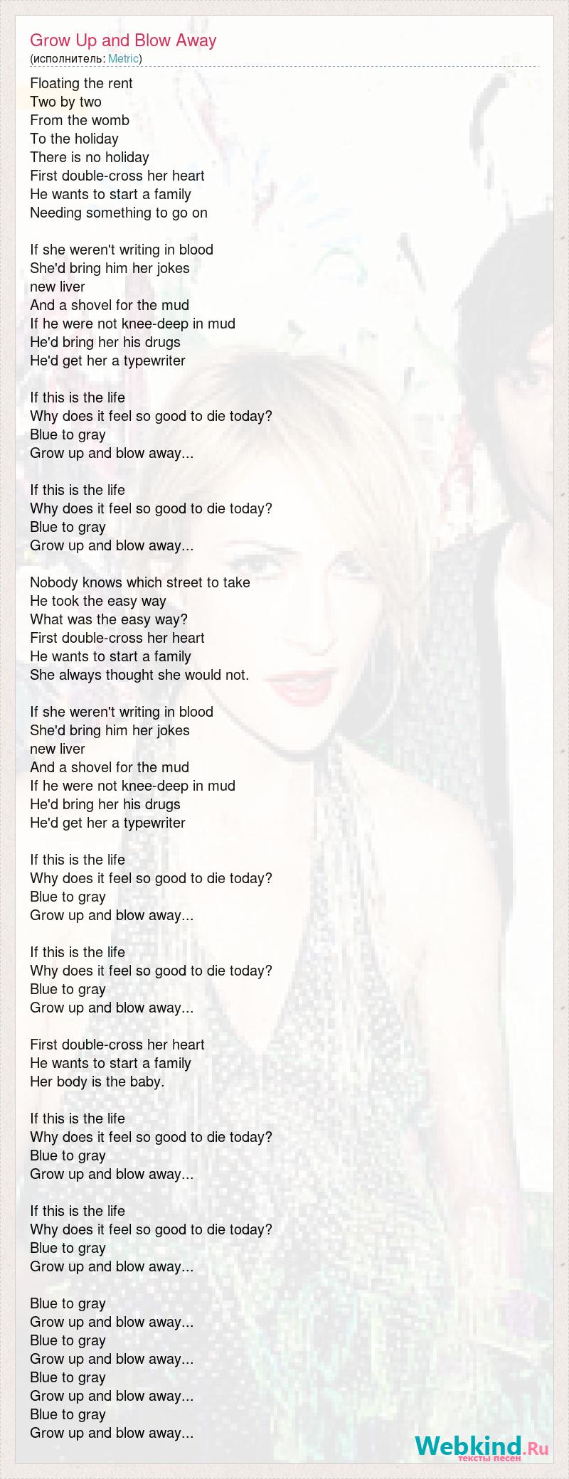 А как ты думаешь, о чем песня "Grow Up and Blow Away" ?