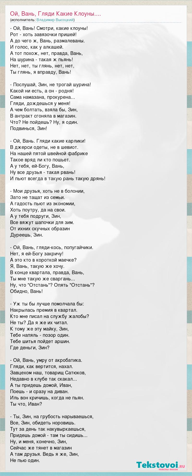 А как ты думаешь, о чем песня "Ой, Вань, Гляди Какие Клоуны...." ?