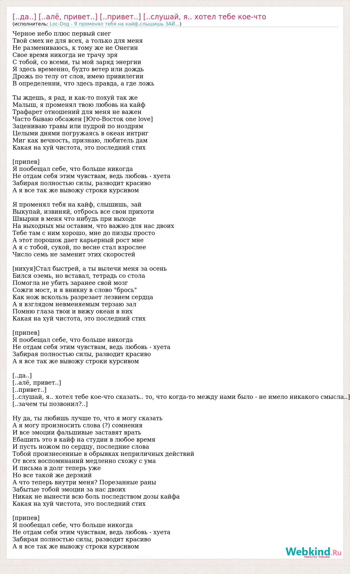 Главная→Исполнители→Loc-Dog - Я променял тебя на кайф,слышишь ЗАЙ...→[..да..] [..алё, привет..] [..привет..] [..слушай, я.. хотел тебе кое-что