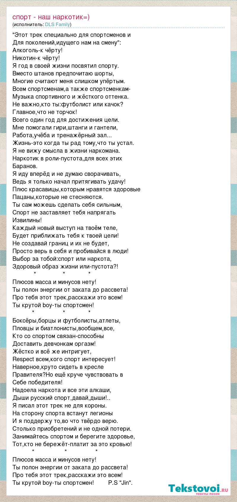 А как ты думаешь, о чем песня "Спорт - наш наркотик=)" ?