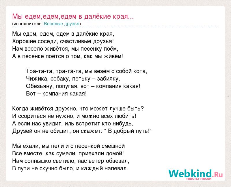 А как ты думаешь, о чем песня "Мы едем,едем,едем в далёкие края..." ?