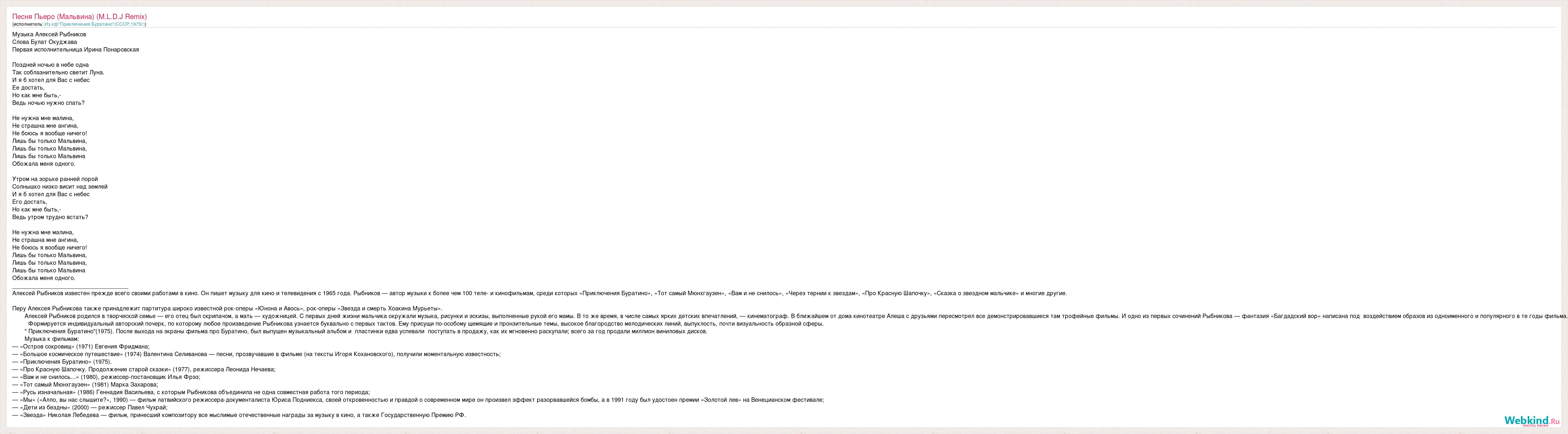 А как ты думаешь, о чем песня "Песня Пьеро (Мальвина) (M.L.D.J Remix)" ?