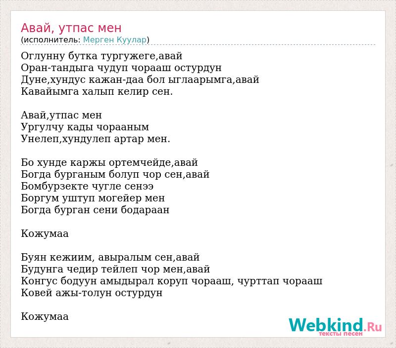 А как ты думаешь, о чем песня "Авай, утпас мен" ?