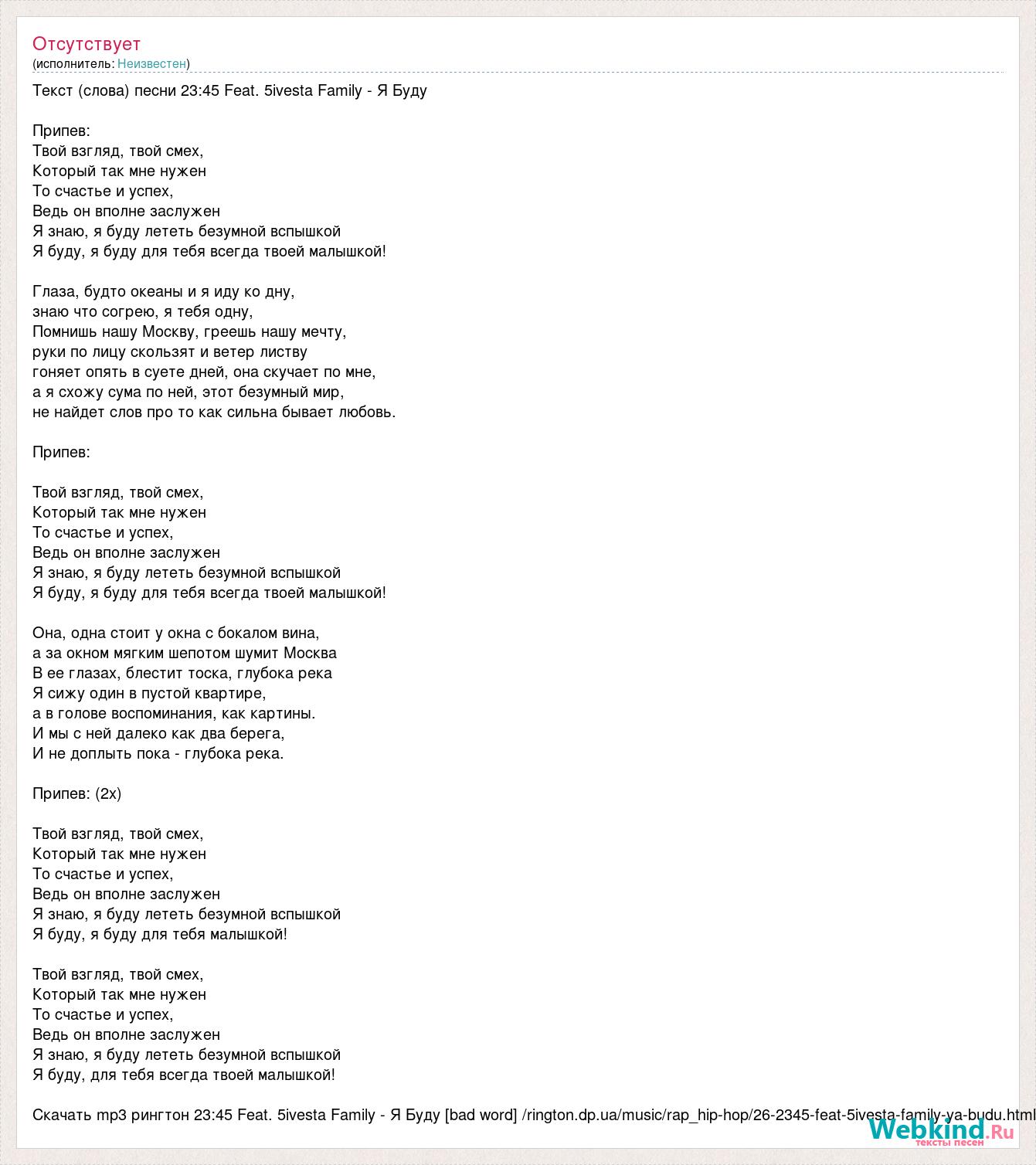 Текст (слова) песни 23:45 Feat. 5ivesta Family - Я Буду