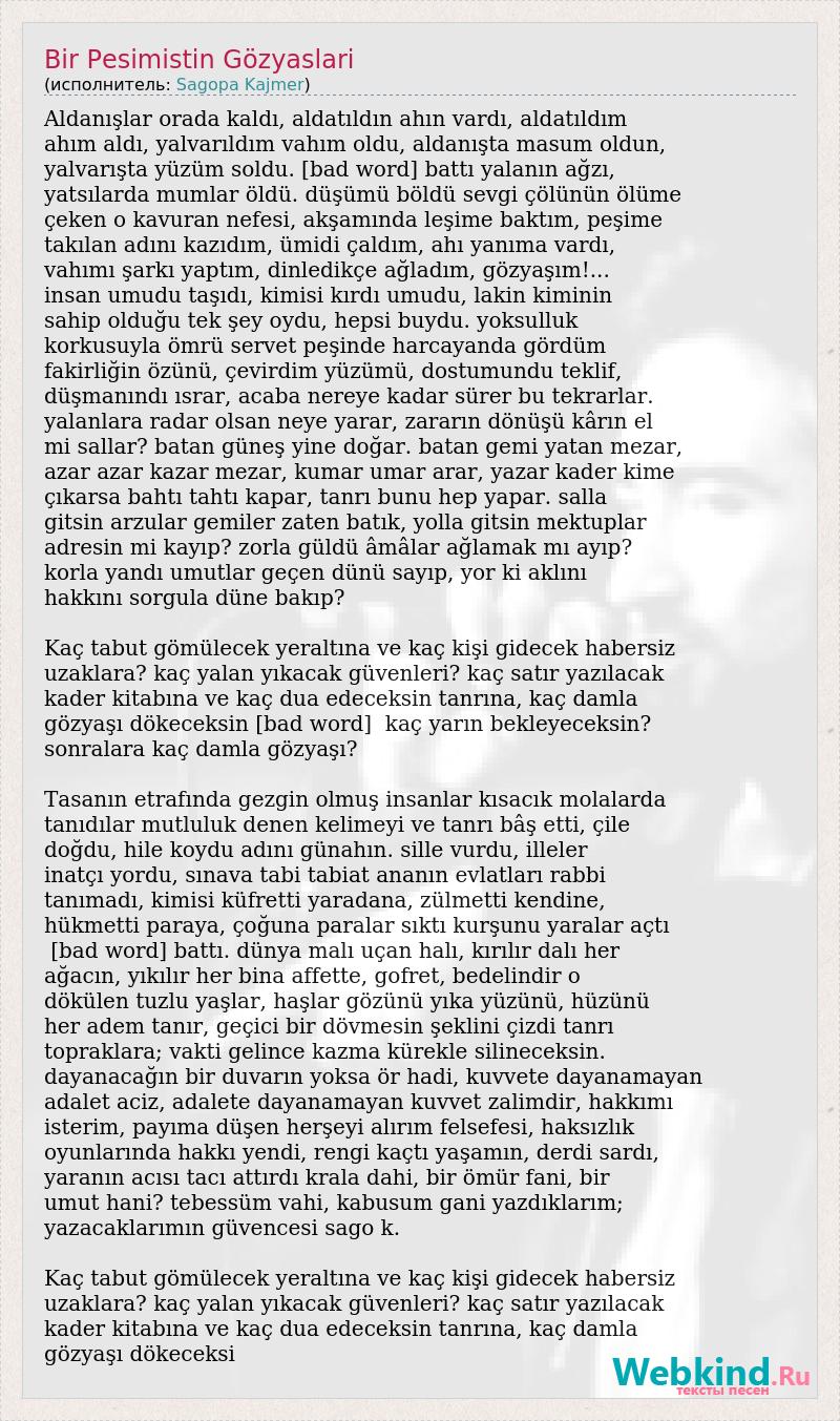 А как ты думаешь, о чем песня "Bir Pesimistin Gözyaslari" ?