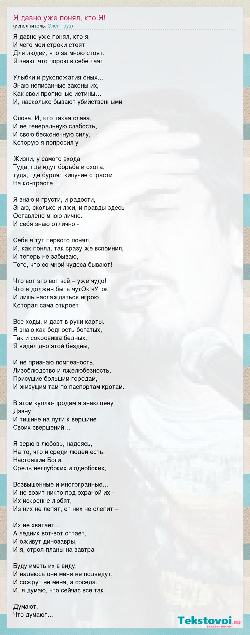А как ты думаешь, о чем песня "Я давно уже понял, кто Я!" ?