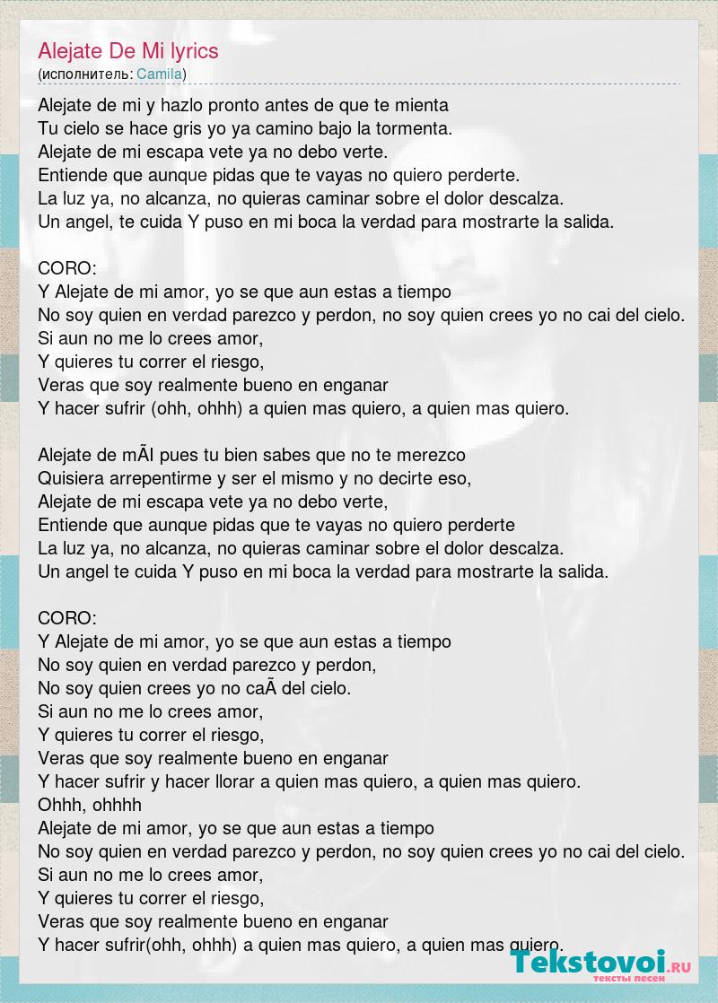 А как ты думаешь, о чем песня "Alejate De Mi lyrics" ?