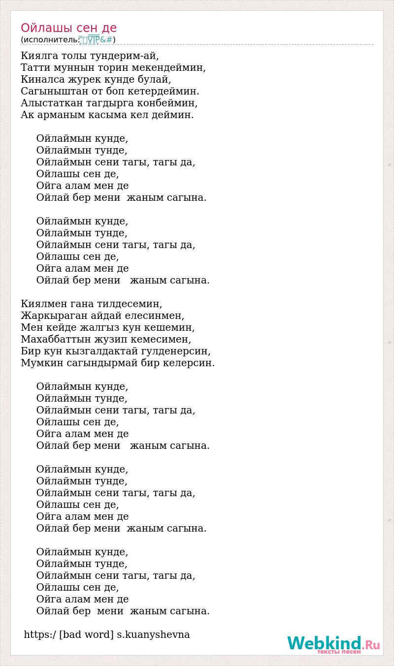 А как ты думаешь, о чем песня "Ойлашы сен де" ?