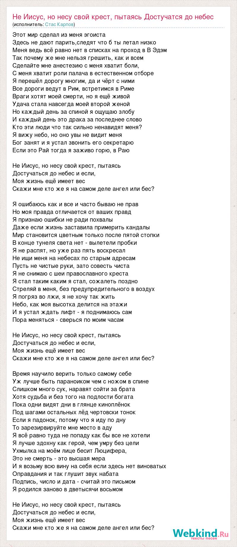 Главная→Исполнители→Стас Карпов→Не Иисус, но несу свой крест, пытаясь Достучатся до небес и если, Моя