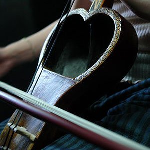 Кобыз имеет ковшеобразный корпус, короткую, дугообразно изогнутую шейку, большую плоскую головку и состоит из выдолбленного, обтянутого пузырём полушара с прикреплённой к нему наверху ручкой и с выпуском внизу для утверждения подставки. Две струны, навязываемые на кобыз, свиваются из конских волос. Общая длина инструмента 600-730 мм.Играют на кобызе, сжимая его в коленях... подробнее