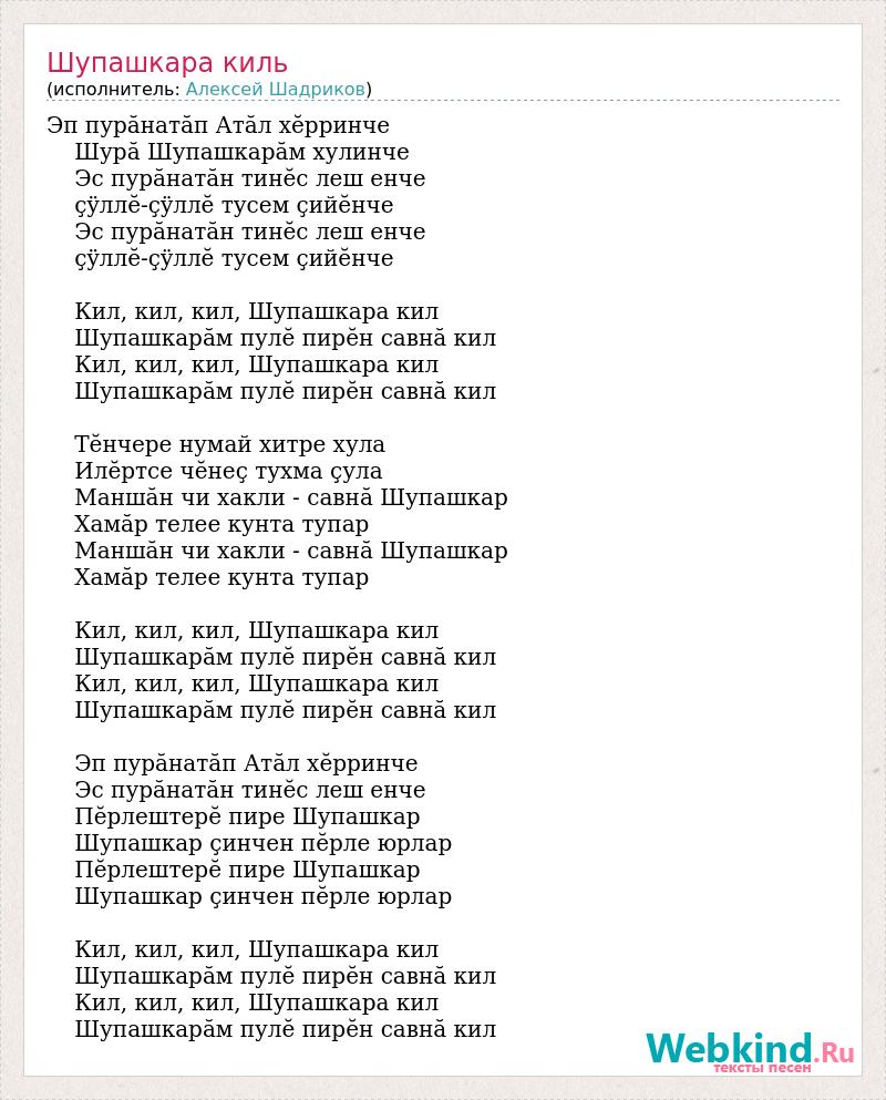 А как ты думаешь, о чем песня "Шупашкара киль" ?