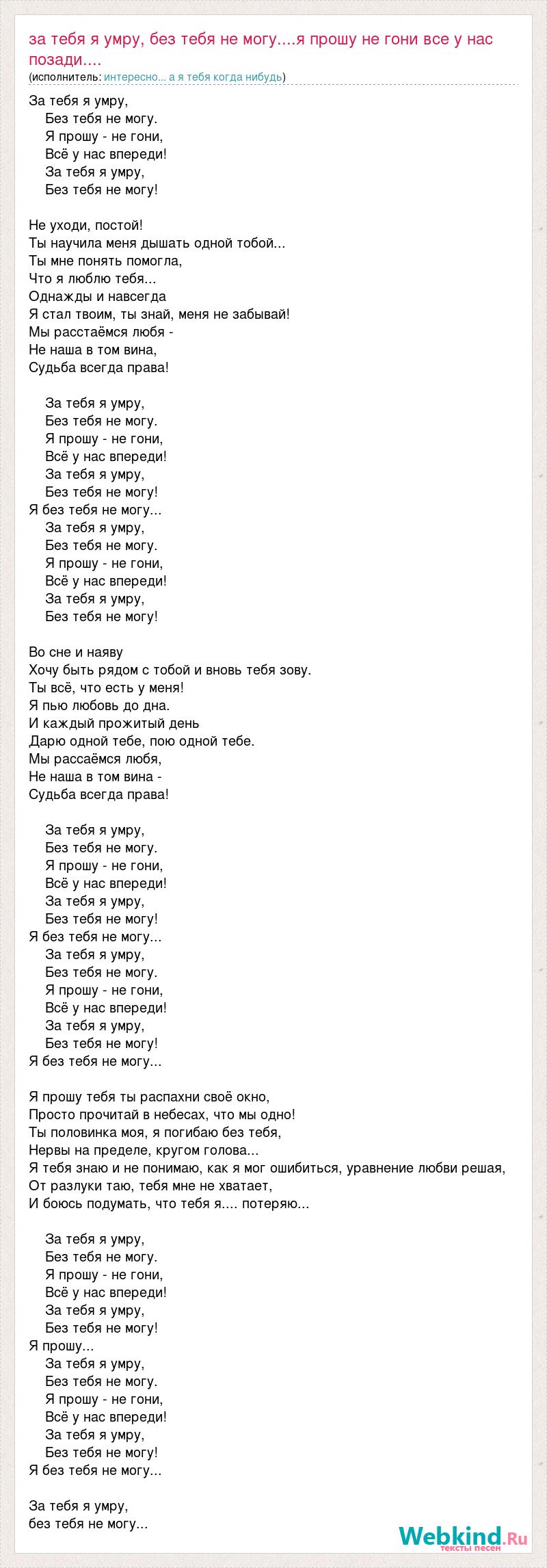 За тебя я умру, без тебя не могу....я прошу не гони все у нас позади....