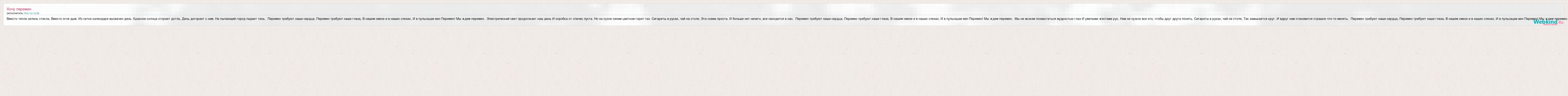 Вместо тепла зелень стекла, Вместо огня дым. Из сетки календаря выхвачен день. Красное солнце сгорает дотла, День догорает с ним. На пылающий город падает тень. Перемен требуют наши сердца, Перемен требуют наши глаза, В нашем смехе и в наших слезах, И в пульсации вен Перемен! Мы ждем перемен. Электрический свет продолжает наш день И коробка от спичек пуста. Но на кухне синим цветком горит газ. Сигареты в руках, чай на столе, Эта схема проста. И больше нет ничего, все находится в нас. Перемен требуют наши сердца, Перемен требуют наши глаза, В нашем смехе и в наших слезах, И в пульсации вен Перемен! Мы ждем перемен. Мы не можем похвастаться мудростью глаз И умелыми жестами рук, Нам не нужно все это, чтобы друг друга понять. Сигареты в руках, чай на столе, Так замыкается круг. И вдруг нам становится страшно что-то менять. Перемен требуют наши сердца, Перемен требуют наши глаза, В нашем смехе и в наших слезах, И в пульсации вен Перемен! Мы ждем перемен.