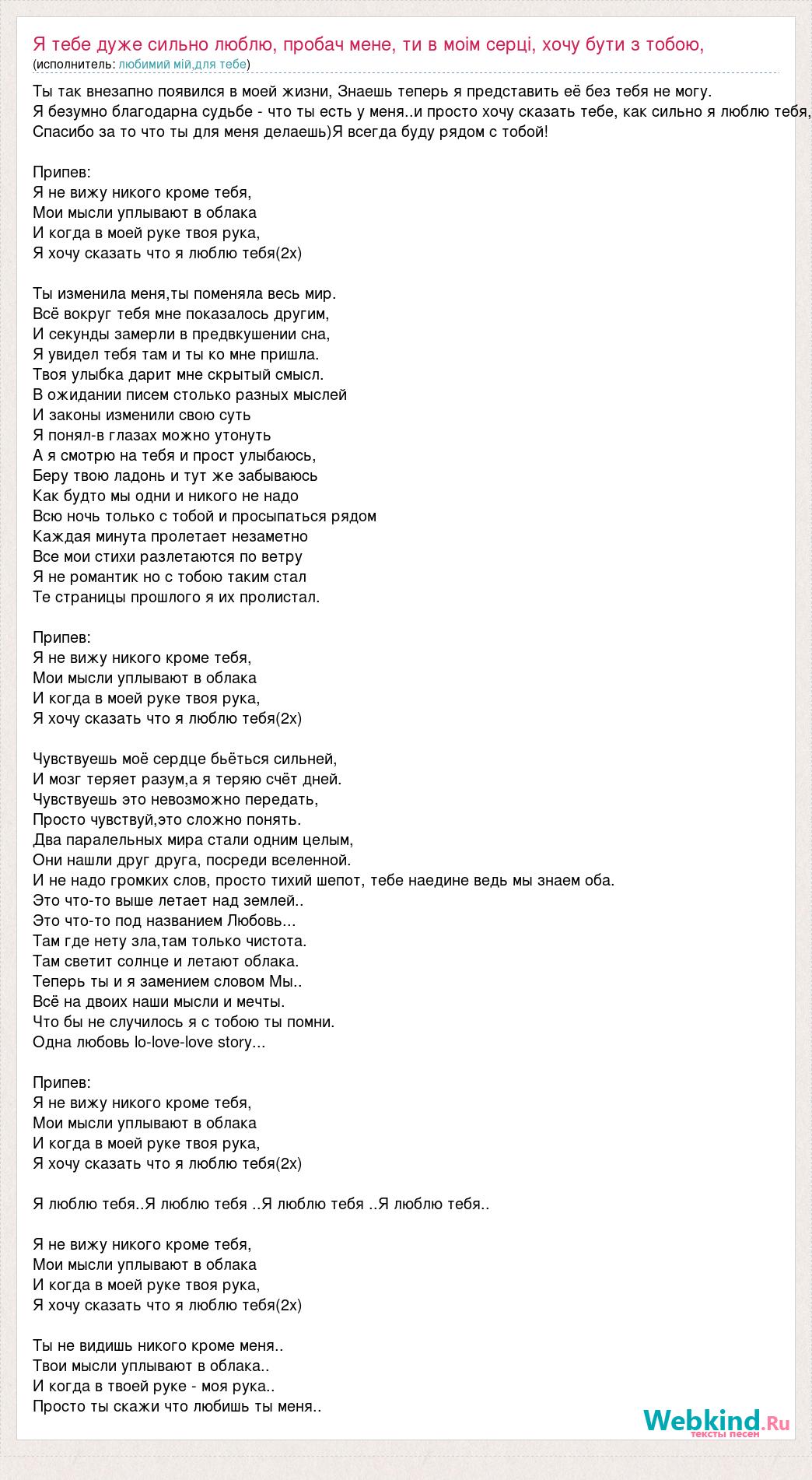 Главная→Исполнители→Любимий мiй,для тебе→Я тебе дуже сильно люблю, пробач мене, ти в моiм серцi, хочу бути з тобою