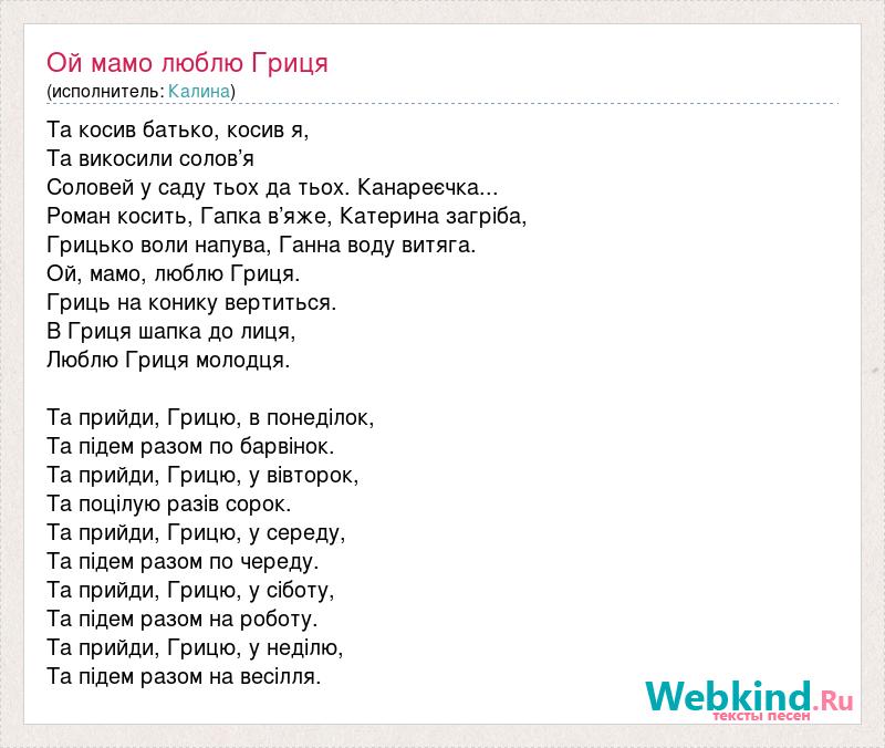А как ты думаешь, о чем песня "Ой мамо люблю Гриця" ?