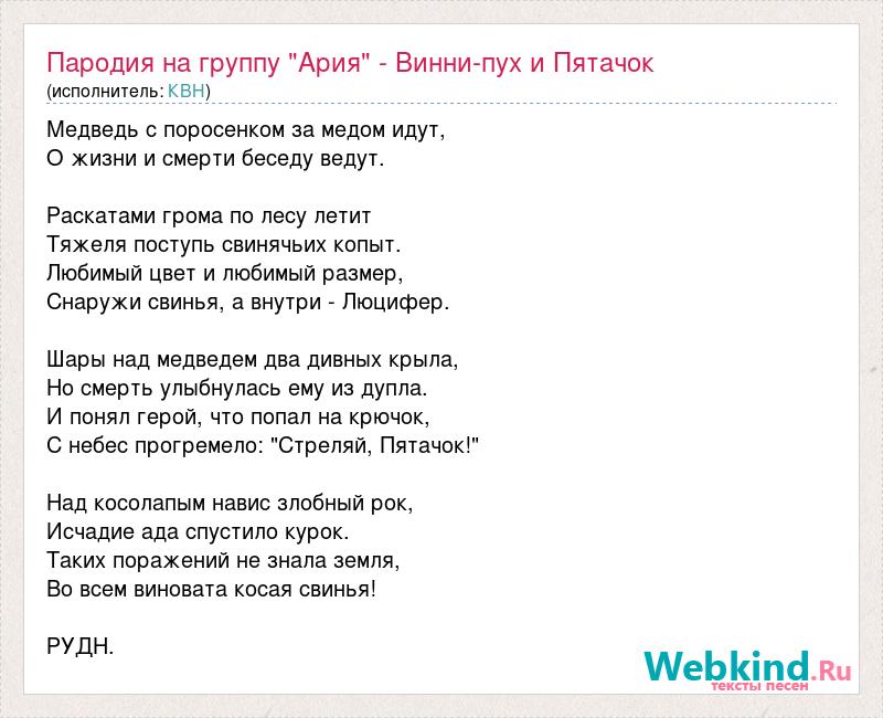 А как ты думаешь, о чем песня "Пародия на группу "Ария" - Винни-пух и Пятачок" ?
