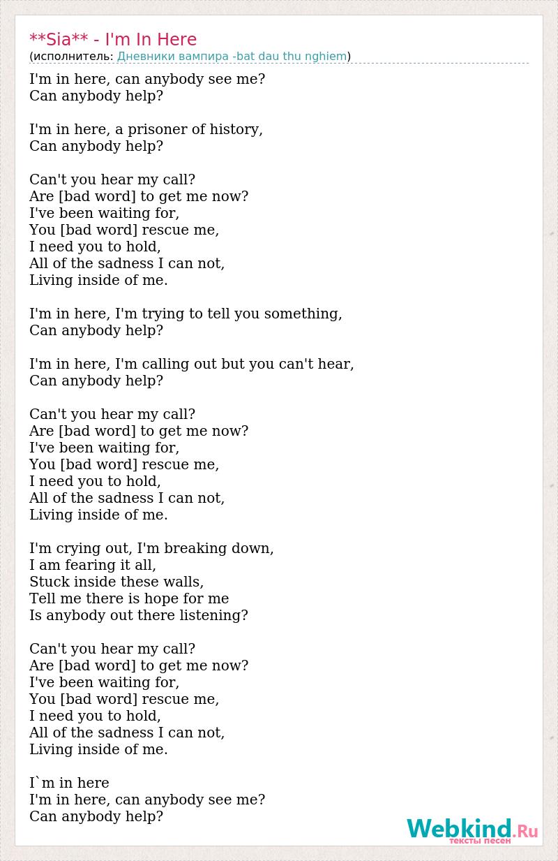 А как ты думаешь, о чем песня "**Sia** - I'm In Here" ?