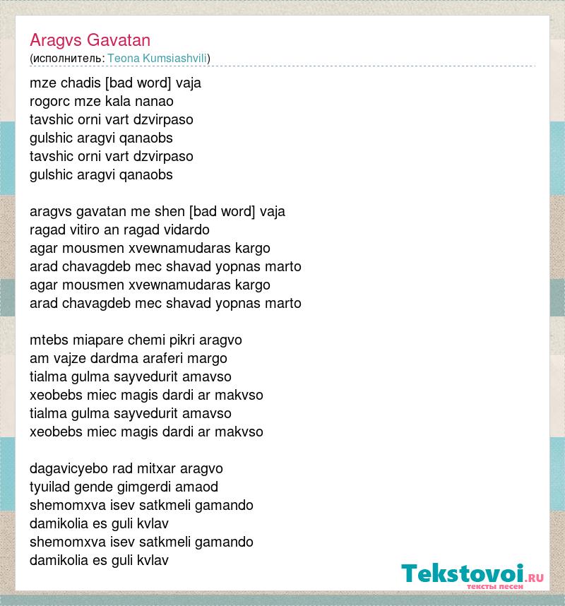 mze chadis grublebshi vaja rogorc mze kala nanao tavshic orni vart dzvirpaso gulshic aragvi qanaobs tavshic orni vart dzvirpaso gulshic aragvi qanaobs aragvs gavatan me shen siyvaruls vaja ragad vitiro an ragad vidardo agar mousmen xvewnamudaras kargo arad chavagdeb mec shavad yopnas marto agar mousmen xvewnamudaras kargo arad chavagdeb mec shavad yopnas marto mtebs miapare chemi pikri aragvo am vajze dardma araferi margo tialma gulma sayvedurit amavso xeobebs miec magis dardi ar makvso tialma gulma sayvedurit amavso xeobebs miec magis dardi ar makvso dagavicyebo rad mitxar aragvo tyuilad gende gimgerdi amaod shemomxva isev satkmeli gamando damikolia es guli kvlav shemomxva isev satkmeli gamando damikolia es guli kvlav
