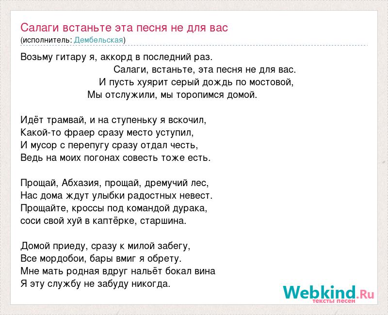 Салаги встаньте эта песня не для вас