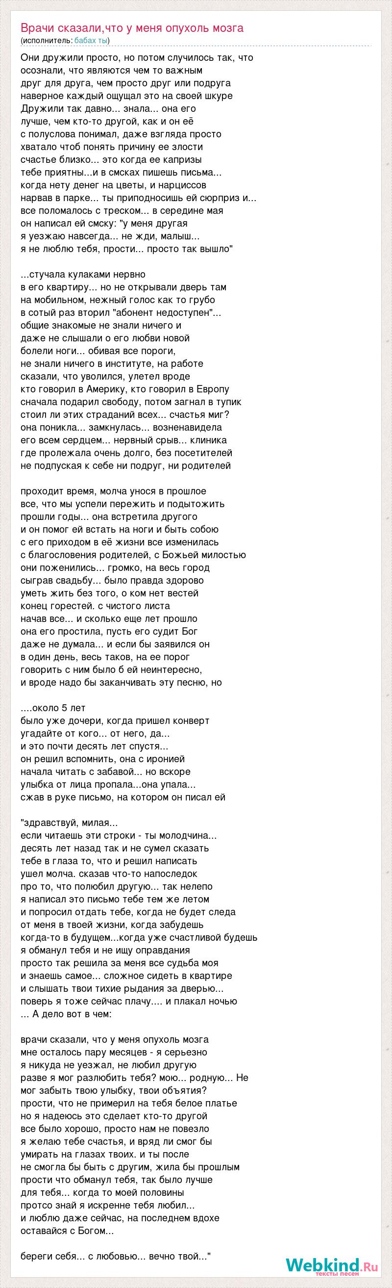А как ты думаешь, о чем песня "Врачи сказали,что у меня опухоль мозга" ?