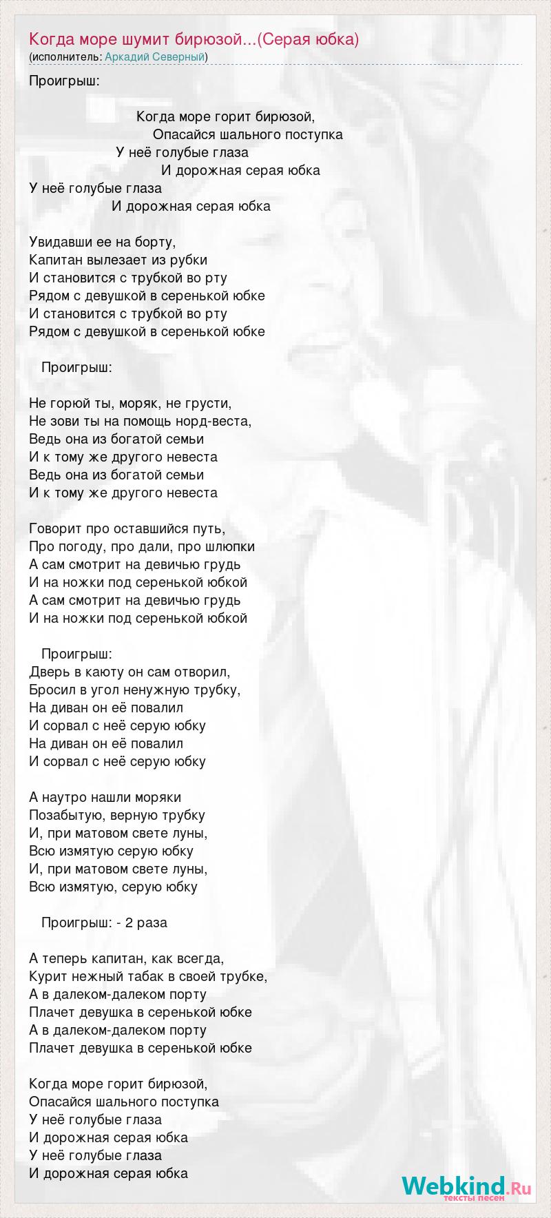 А как ты думаешь, о чем песня "Когда море шумит бирюзой...(Серая юбка)" ?
