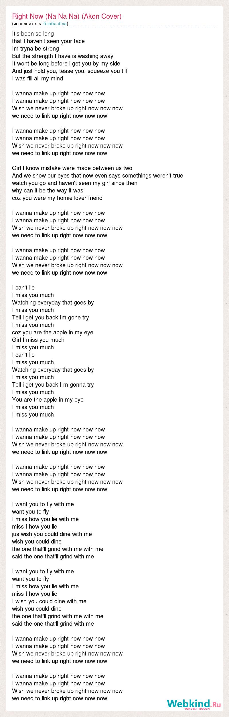 А как ты думаешь, о чем песня "Right Now (Na Na Na) (Akon Cover)" ?