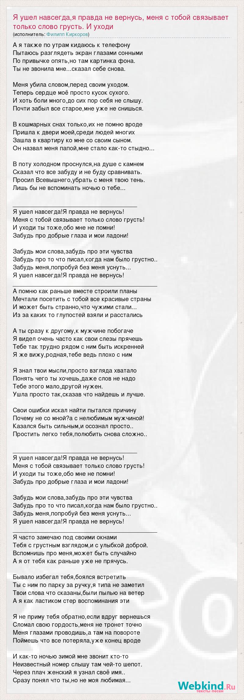 Я ушел навсегда,я правда не вернусь, меня с тобой связывает только слово г
