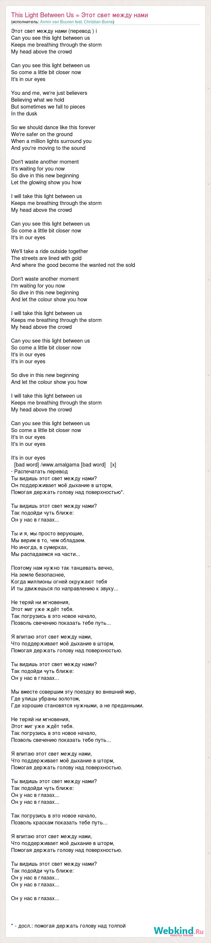 Главная→Исполнители→Armin van Buuren feat. Christian Burns→This Light Between Us = Этот свет между нами