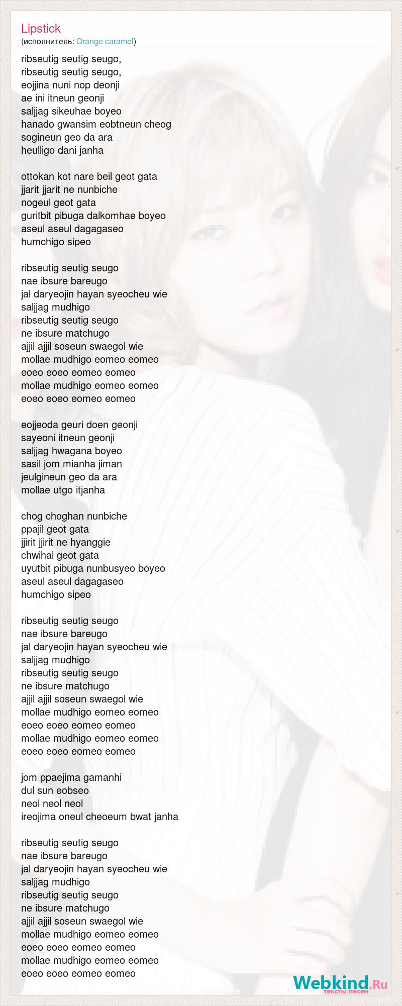 ribseutig seutig seugo, ribseutig seutig seugo, eojjina nuni nop deonji ae ini itneun geonji saljjag sikeuhae boyeo hanado gwansim eobtneun cheog sogineun geo da ara heulligo dani janha ottokan kot nare beil geot gata jjarit jjarit ne nunbiche nogeul geot gata guritbit pibuga dalkomhae boyeo aseul aseul dagagaseo humchigo sipeo ribseutig seutig seugo nae ibsure bareugo jal daryeojin hayan syeocheu wie saljjag mudhigo ribseutig seutig seugo ne ibsure matchugo ajjil ajjil soseun swaegol wie mollae mudhigo eomeo eomeo eoeo eoeo eomeo eomeo mollae mudhigo eomeo eomeo eoeo eoeo eomeo eomeo eojjeoda geuri doen geonji sayeoni itneun geonji saljjag hwagana boyeo sasil jom mianha jiman jeulgineun geo da ara mollae utgo itjanha chog choghan nunbiche ppajil geot gata jjirit jjirit ne hyanggie chwihal geot gata uyutbit pibuga nunbusyeo boyeo aseul aseul dagagaseo humchigo sipeo ribseutig seutig seugo nae ibsure bareugo jal daryeojin hayan syeocheu wie saljjag mudhigo ribseutig seutig seugo ne ibsure matchugo ajjil ajjil soseun swaegol wie mollae mudhigo eomeo eomeo eoeo eoeo eomeo eomeo mollae mudhigo eomeo eomeo eoeo eoeo eomeo eomeo jom ppaejima gamanhi dul sun eobseo neol neol neol ireojima oneul cheoeum bwat janha ribseutig seutig seugo nae ibsure bareugo jal daryeojin hayan syeocheu wie saljjag mudhigo ribseutig seutig seugo ne ibsure matchugo ajjil ajjil soseun swaegol wie mollae mudhigo eomeo eomeo eoeo eoeo eomeo eomeo mollae mudhigo eomeo eomeo eoeo eoeo eomeo eomeo