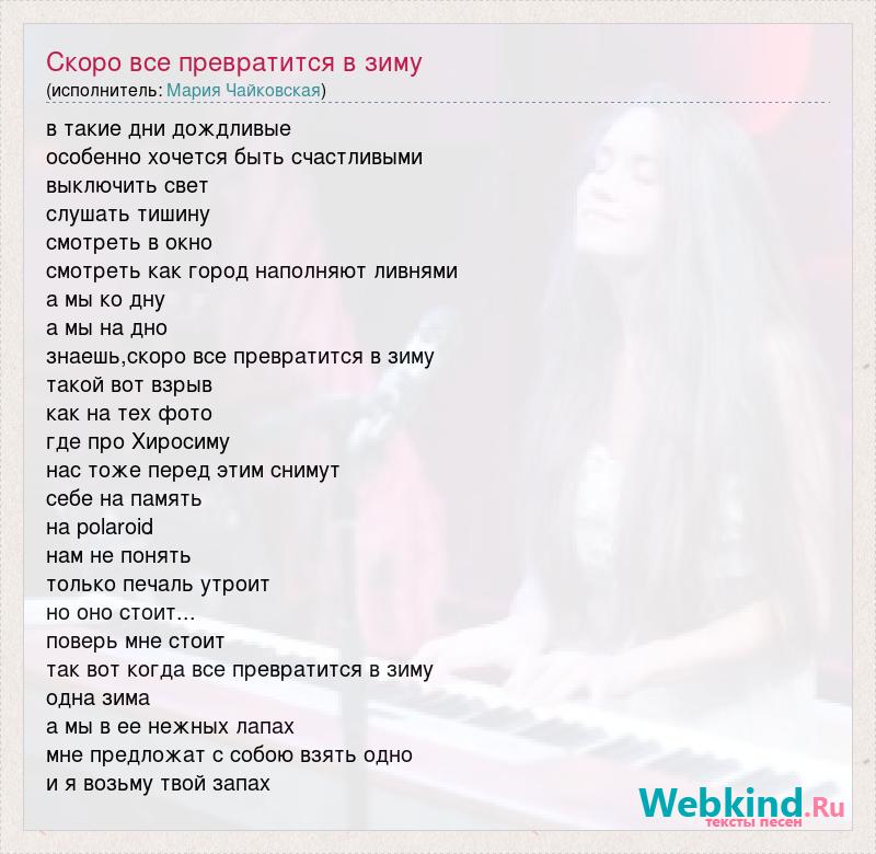 А как ты думаешь, о чем песня "Скоро все превратится в зиму" ?