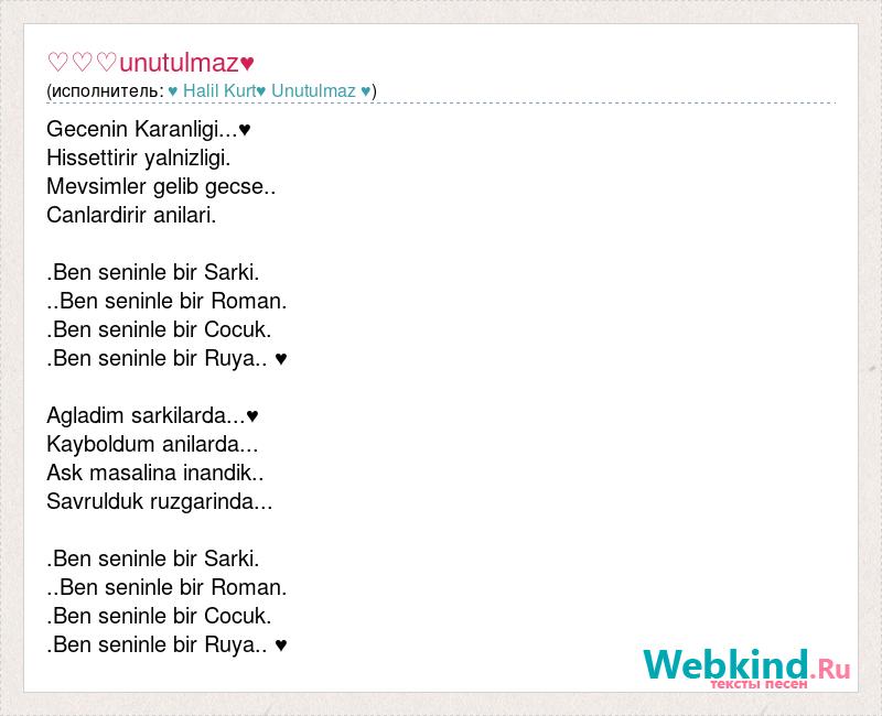 А как ты думаешь, о чем песня "♡♡♡unutulmaz♥" ?