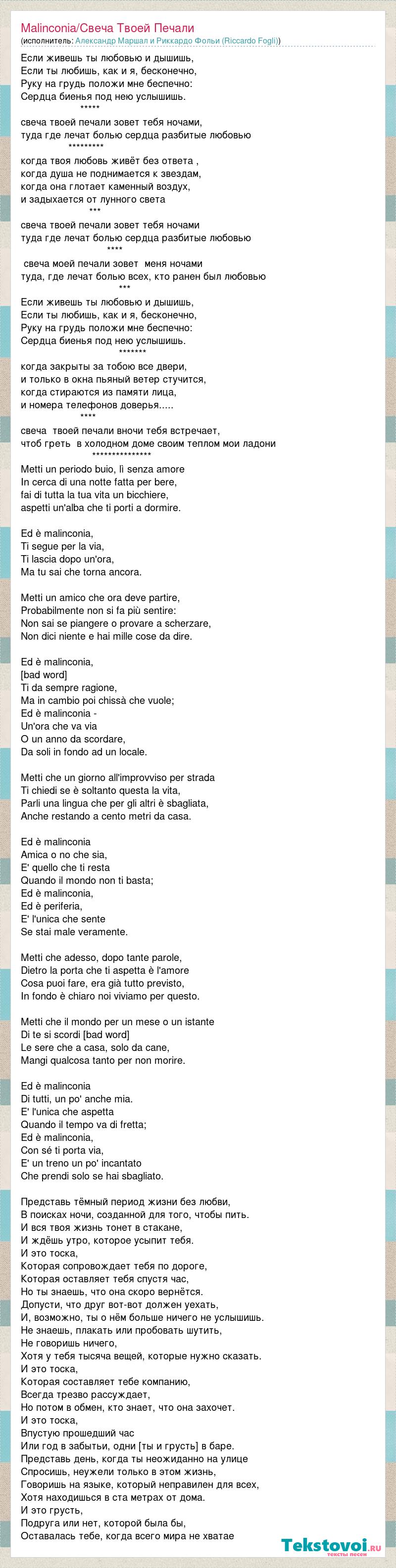 Главная→Исполнители→Александр Маршал и Риккардо Фольи (Riccardo Fogli)→Malinconia/Свеча Твоей Печали