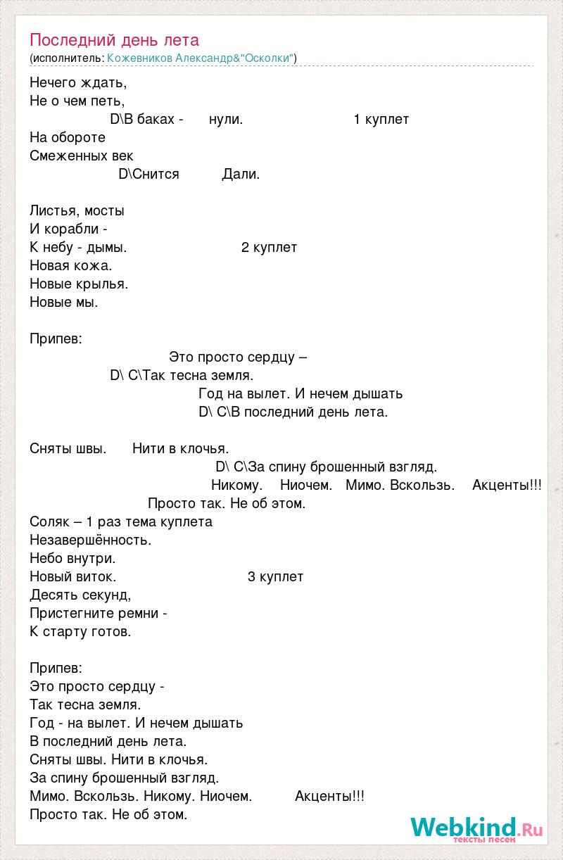 А как ты думаешь, о чем песня "Последний день лета" ?