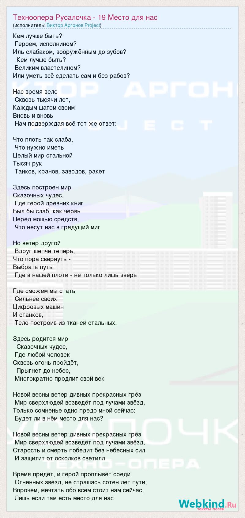 А как ты думаешь, о чем песня "Техноопера Русалочка - 19 Место для нас" ?