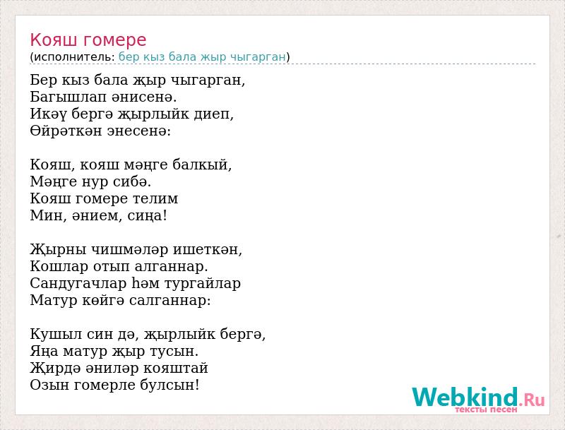 А как ты думаешь, о чем песня "Кояш гомере" ?