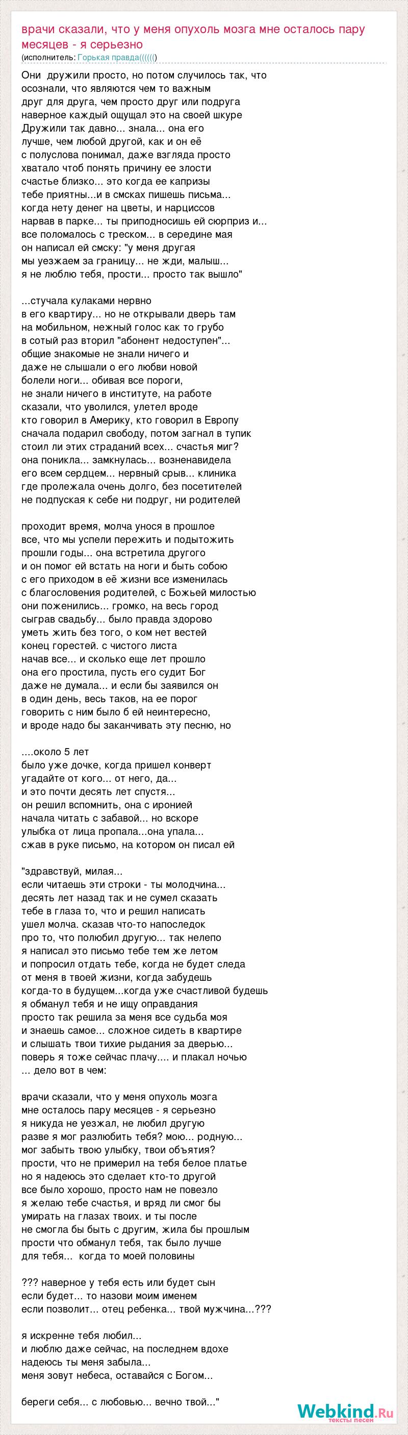 Главная→Исполнители→Горькая правда((((((→Врачи сказали, что у меня опухоль мозга мне осталось пару месяцев - я с