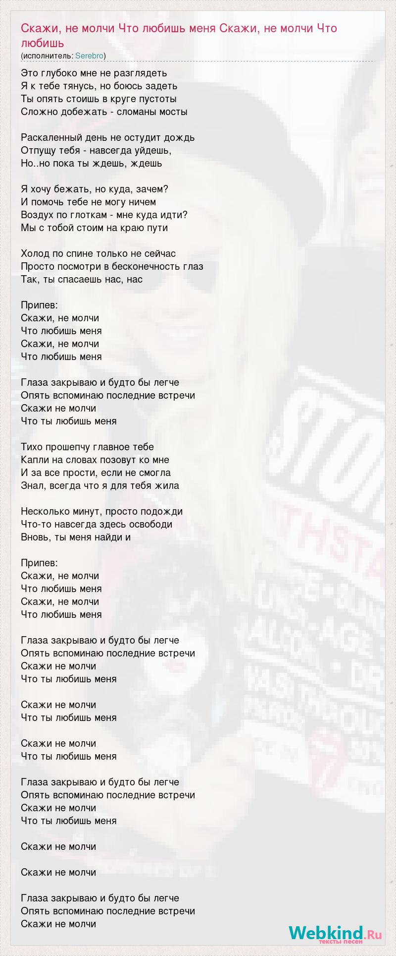 Главная→Исполнители→Serebro→Скажи, не молчи Что любишь меня Скажи, не молчи Что любишь меня Глаза за