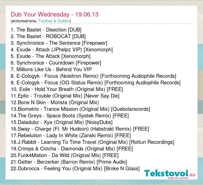 А как ты думаешь, о чем песня "Dub Your Wednesday - 19.06.13" ?