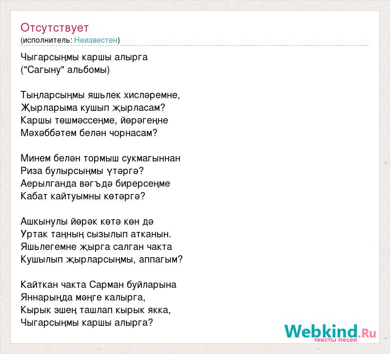 А как ты думаешь, о чем песня "Чыгарсыңмы каршы алырга" ?