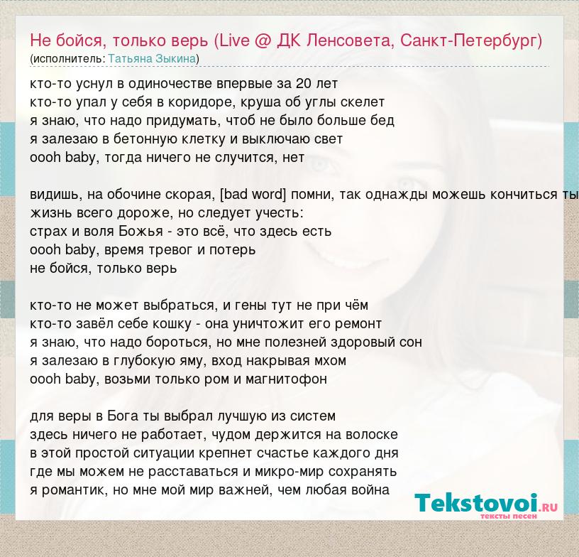 А как ты думаешь, о чем песня "Не бойся, только верь (Live @ ДК Ленсовета, Санкт-Петербург)" ?