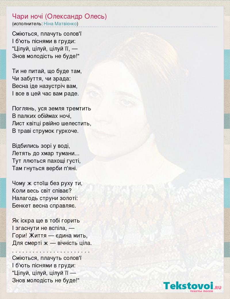А как ты думаешь, о чем песня "Чари ночі (Олександр Олесь)" ?